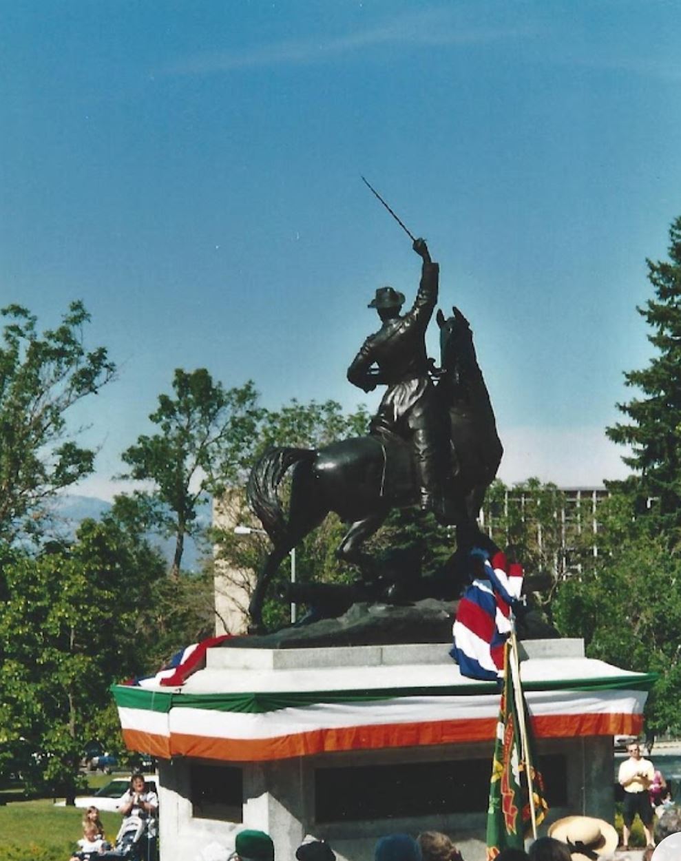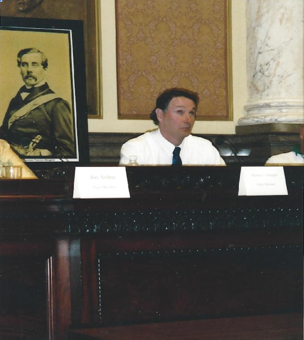 As a result of publication around the stage play, I was invited to speak on a panel after the rededication of the statue of Thomas Francis Meagher at the Montana State Capitol Building in Helena, Montana on July 5, 2005. This is a photo of me speaking at the old Senate Chambers in the State Capitol Building following the re dedication (ABOVE RIGHT).